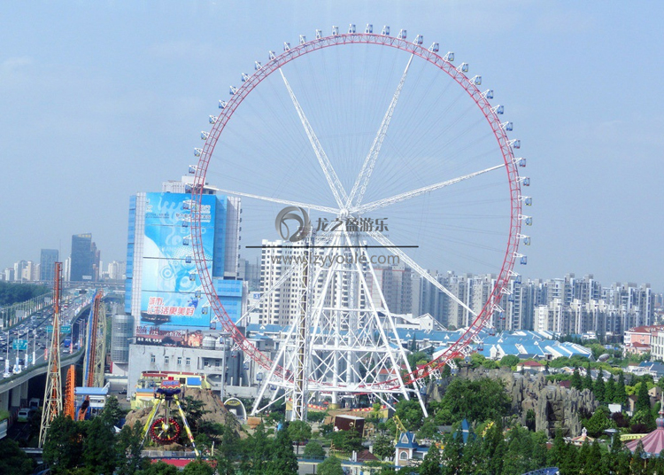 龍之盈摩天輪是每一個(gè)大型游樂(lè)園里必不可少的一款游樂(lè)園設(shè)備,我們所知道的大型游樂(lè)設(shè)備摩天輪,又稱觀覽車,是一種大型轉(zhuǎn)輪狀的機(jī)械建筑設(shè)施,上面掛在輪邊緣的是供乘客乘搭的座艙。乘客坐在摩天輪慢慢的往上轉(zhuǎn),可以從高空俯瞰四周景色。最常見到摩天輪存在的場(chǎng)合是游樂(lè)園、主題公園與園游會(huì),也是游樂(lè)場(chǎng)的地標(biāo)性景點(diǎn)。每個(gè)人的青春里都有摩天輪的身影,代表著夢(mèng)幻、意味著放飛、彰顯著個(gè)性,正值年少或者回味當(dāng)年,坐一坐摩天輪定會(huì)讓人思緒飛揚(yáng)。