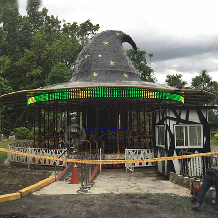 旋轉(zhuǎn)木馬是游樂(lè)場(chǎng)里常見(jiàn)的一款兒童游樂(lè)設(shè)備,伸手大人與小孩的喜愛(ài)。由于技術(shù)的發(fā)展,傳統(tǒng)的旋轉(zhuǎn)木馬延伸出許多造型新奇的新型轉(zhuǎn)馬,今天就為大家介紹一款由龍之盈生產(chǎn),大陸與臺(tái)灣攜手設(shè)計(jì)的一款新型轉(zhuǎn)馬-飛天魔帽,采用了許多前沿的技術(shù),加入了許多新的玩法,接下來(lái)就隨著開(kāi)啟一段奇妙之旅吧。