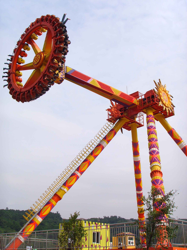 大擺錘:游樂中經(jīng)典的大擺錘,對于常去游樂園的人并不陌生。他的游樂方式是巨大的鐘擺伴隨著旋轉(zhuǎn)大幅度的往復(fù)搖擺挑戰(zhàn)心理的極限。在極易失去重心的高空中乘客門隨著擺錘搖擺的弧度,游客往往情不自禁的發(fā)出驚呼與歡笑,極大的提高了整個游樂場的歡樂氣氛,使許多游客留連忘返,不愿離開。