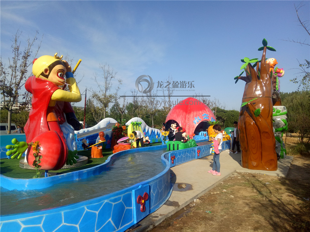 作為許昌龍之盈游樂設(shè)備有限公司的專利新品兒童游樂設(shè)施,花果山漂流一經(jīng)投入就受到孩子們的熱情追捧。孫悟空一直都是孩子們模仿崇拜的王者,孫悟空以經(jīng)典的腳踏筋斗云姿勢(shì)佇立游樂設(shè)施中央以及各種有關(guān)花果山的卡通造型,和它與眾不同新穎的玩法使之成為游樂園中的吸金利器。