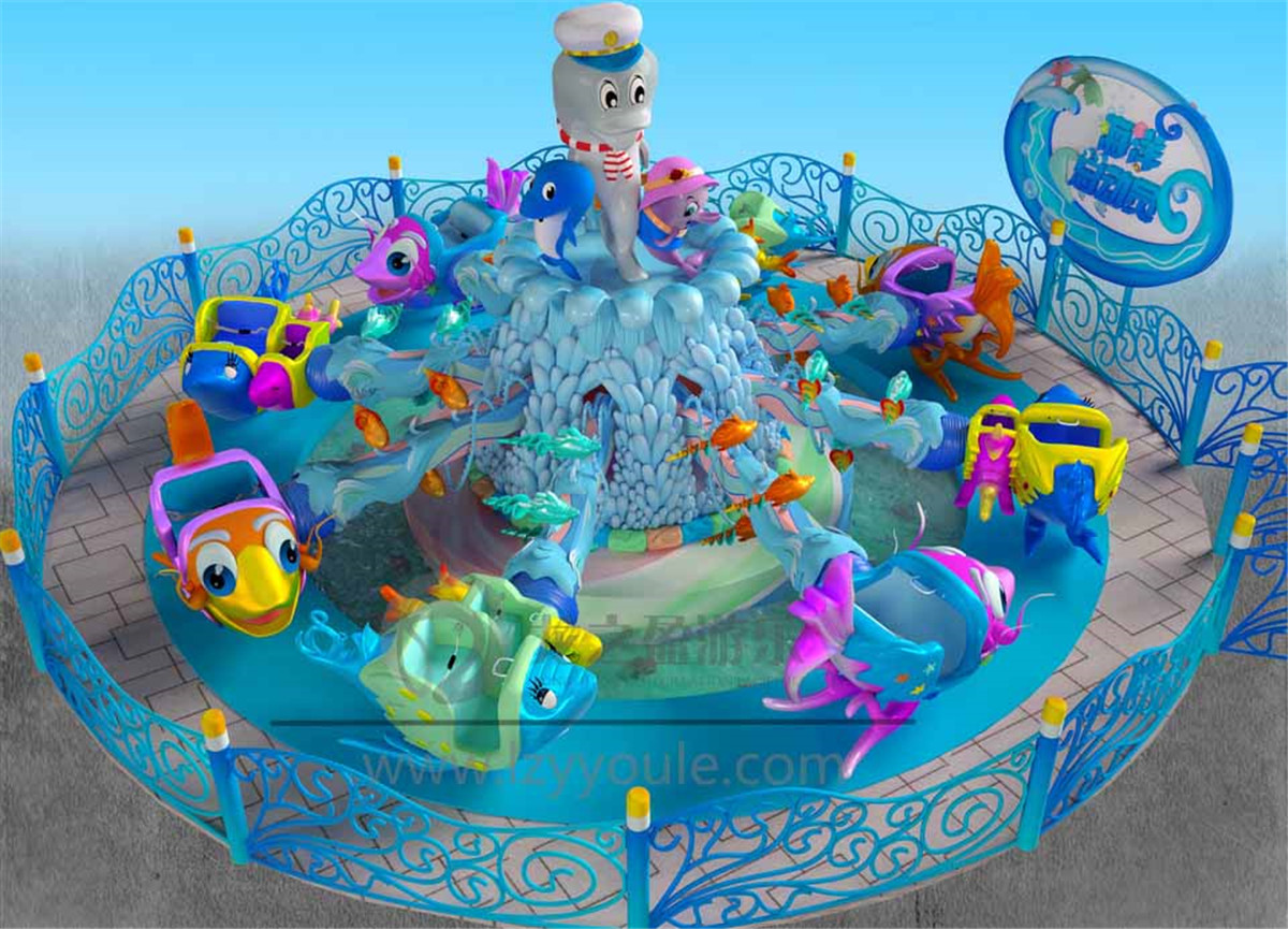 親子互動(dòng)也是兒童游樂設(shè)備不可不說一大特色,神秘的海洋王國加入高低起伏的卡通小丑魚座椅,像是在天空又像是在大海。極具吸引目光。