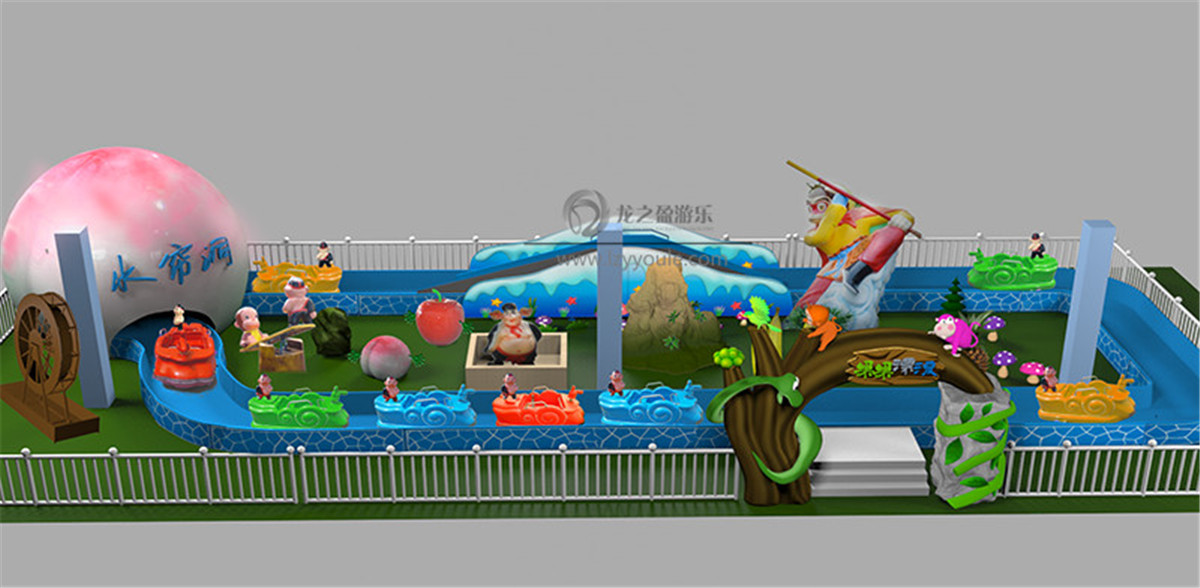首先我們的水上游樂場地中要有能夠吸引孩子眼球并勾起他們探究的好奇心的游樂設(shè)備。龍之盈游樂有一款人物情景互動(dòng)的水上游樂設(shè)備-花果山漂流、叢林探險(xiǎn),以孩子們熟知并未見過的花果山孫悟空為故事原型打造出在高仿真的同時(shí)又能兼具其卡通特色的兒童水上探險(xiǎn)樂園。孫悟空是孩子們心中蓋世英雄般的存在,這樣的一款設(shè)備絕對是能夠吸引孩子的目光。